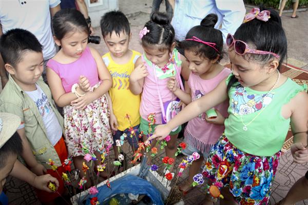 Còn Hương Thảo và Quốc Thái thì “miệt mài” cùng cô Châu Anh tạo dáng xì- tin cho bố mẹ chụp hình.